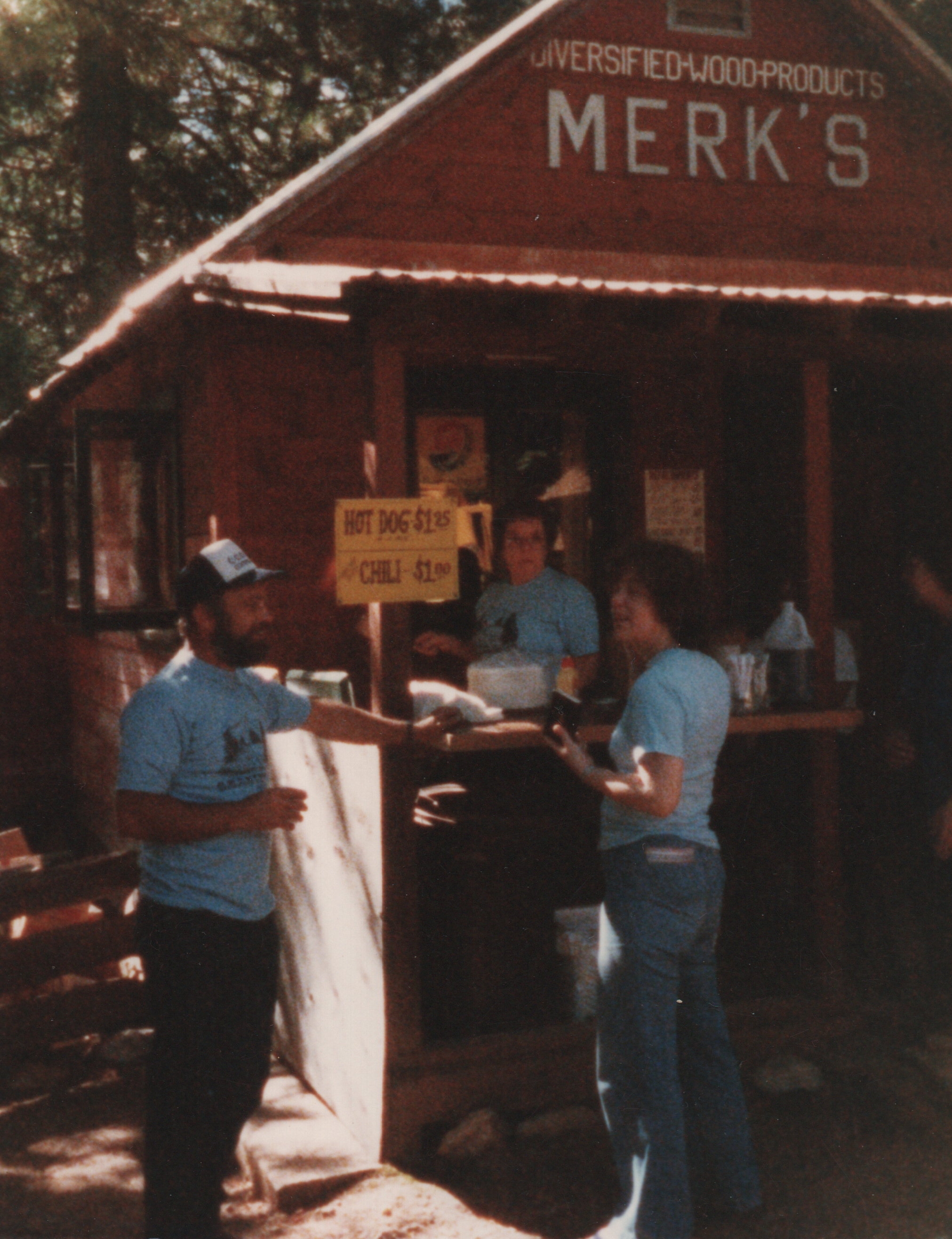 Vintage photo of Merks and one of the first “chili” events featuring Virginia Hickey selling “Hickey’s Chili” – with her daughter Kathy and partner Mike